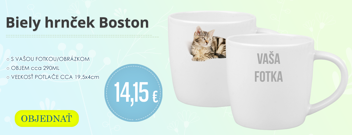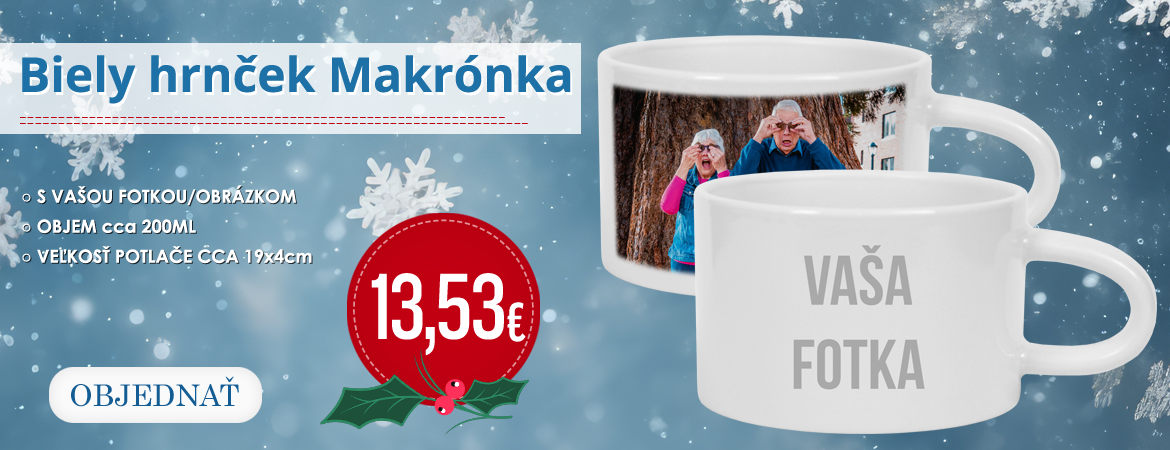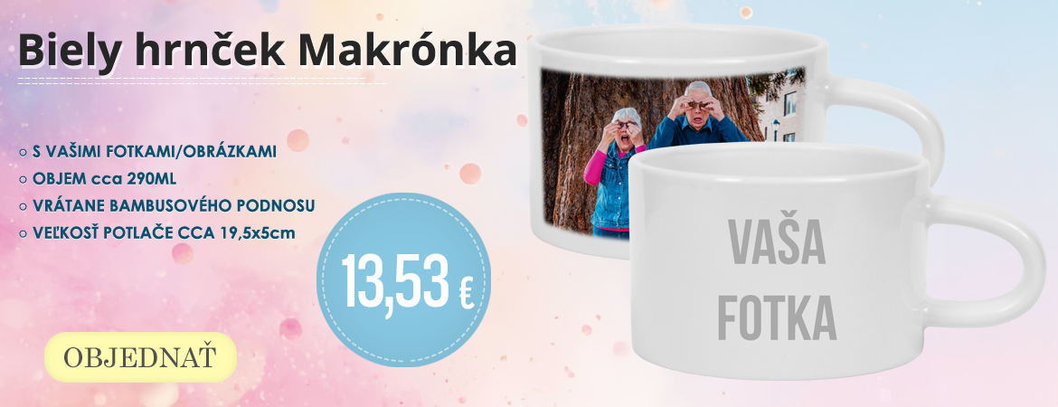 Keramický hrnček, ktorý Vám potlačíme Vašou fotografiou/grafikou/obrázkom/textom. V cene hrnčeka je aj krabička! Špecifikácia: Priemer: 82mm Výška: 95mm Objem: cca 330ml Typ potlače: sublimácia