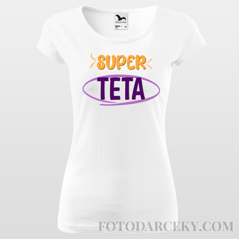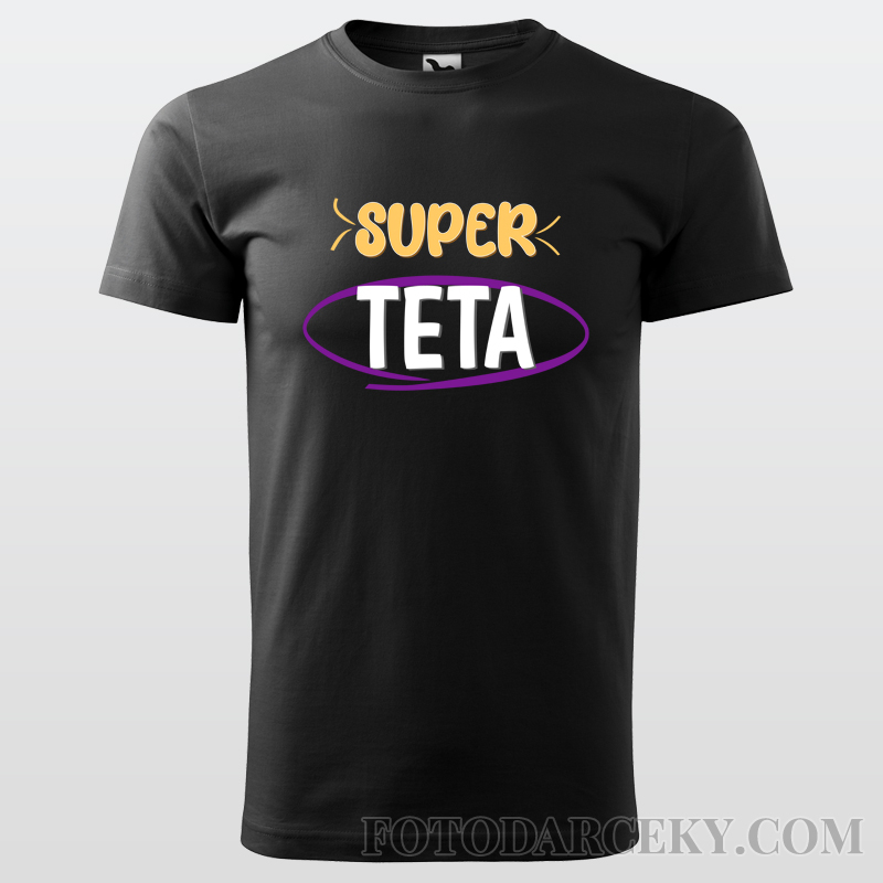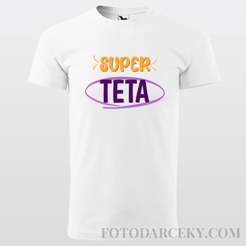 Bavlnené tričko s potlačou "Super teta". Príjemný bavlnený materiál so silikónovou úpravou. Je možné si vybrať pánsky/unisex alebo dámsky strih trička.