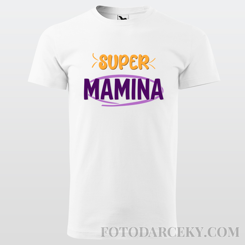 Bavlnené tričko s potlačou "Super mamina". Príjemný bavlnený materiál so silikónovou úpravou. Je možné si vybrať pánsky/unisex alebo dámsky strih trička.