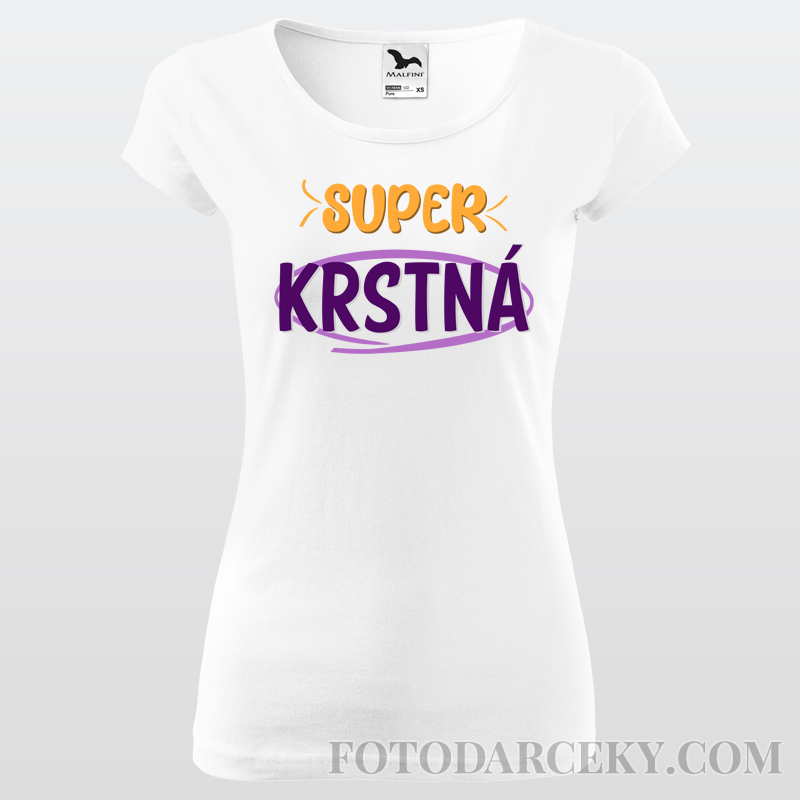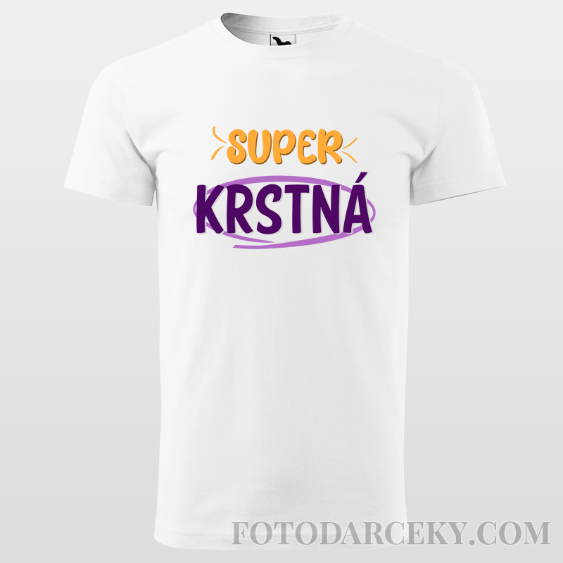 Bavlnené tričko s potlačou "Super krstná". Príjemný bavlnený materiál so silikónovou úpravou. Je možné si vybrať pánsky/unisex alebo dámsky strih trička.