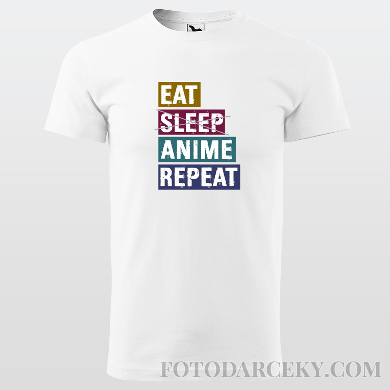 Pánske bavlnené tričko s potlačou "Eat, sleep, anime, repeat".