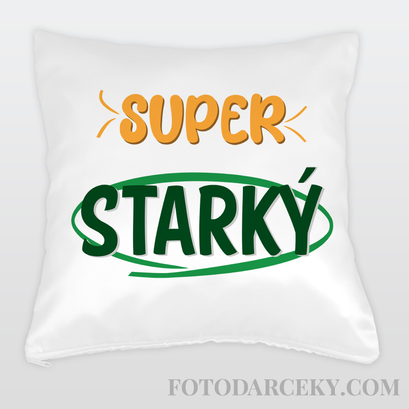 Saténový vankúš potlačený nápisom "Super starký". Potlačená je saténová návliečka. Súčasťou je aj výplň.