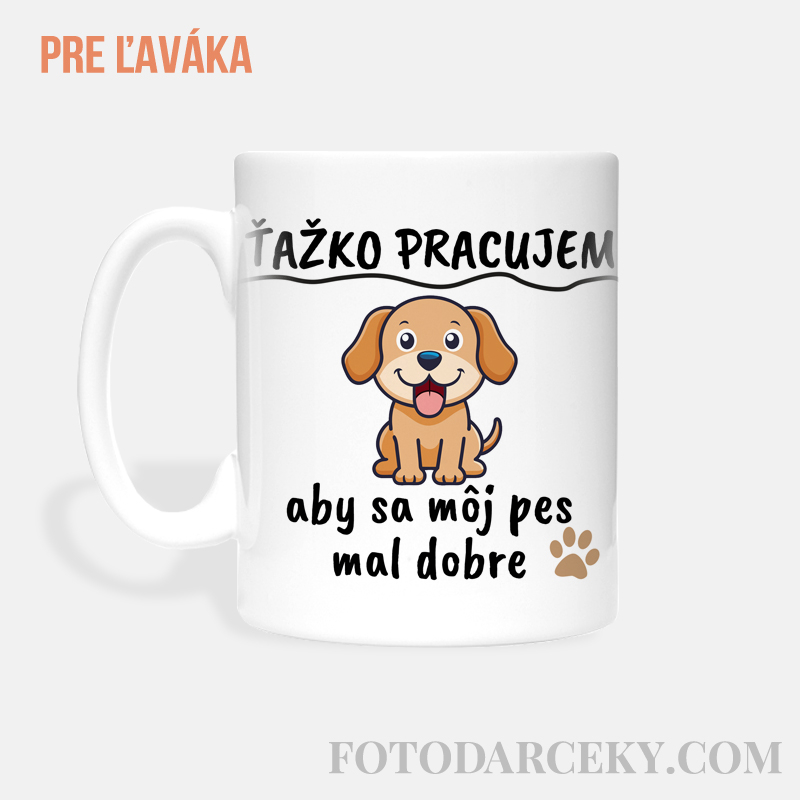 Biely keramický hrnček s nápisom "Ťažko pracujem, aby sa moja mačka mala dobre". V cene hrnčeka je aj krabička!!!