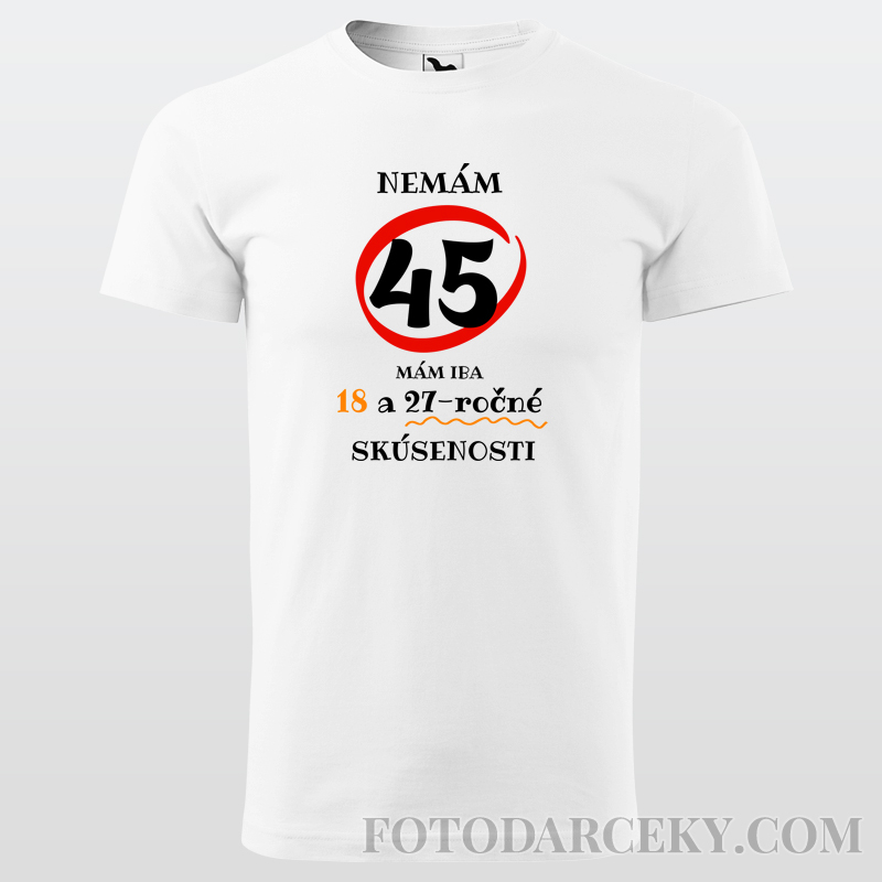 Pánske bavlnené tričko s potlačou "Nemám 45... mám iba len 18 a 27-ročné skúsenosti".