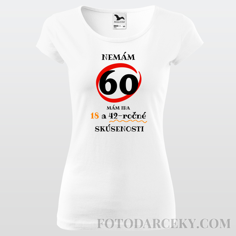 Dámske bavlnené tričko s potlačou "Nemám 60... mám iba 18 a 42-ročné skúsenosti"